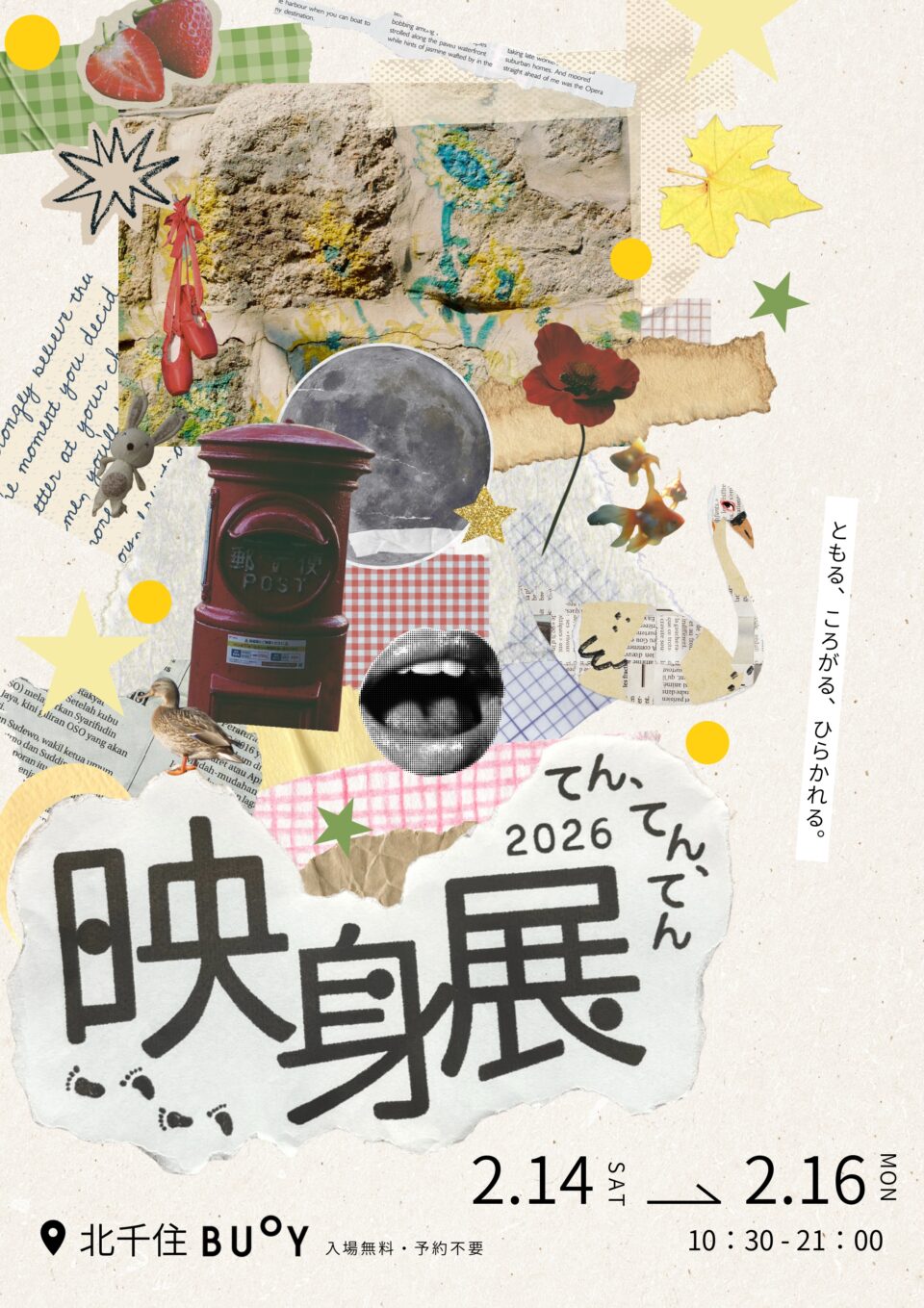 映身展は、立教大学現代心理学部映像身体学科に所属する学生有志によるアートプロジェクトです。9回目となる「映身展 2026」には、60名以上の学科生が出展者として参加し、それぞれの興味を基に、幅広い展示形態を通じて作品を発表しています。映身展2026実行委員会は、作品や人が集うことで、そこから新しい触発が生まれる、「出発点となる遊び場」としての映身展を目指しています。